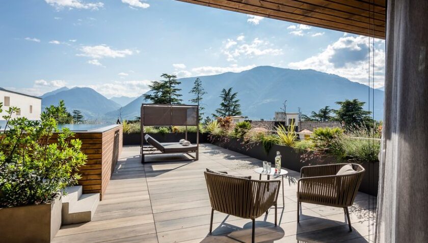 2017 / 2018 wurde das Hotel Ansitz Plantitscherhof in Obermais für Ihre Kunden umgebaut – neu entstanden sind ein komplett neuer Trakt mit Tiefgaragen auf 2 Ebenen, einem neuem Restaurant, welches sich dank verschließbarem Panorama Dach im Handumdrehen in ein Outdoor- Restaurant verwandeln lässt. Bei den Zimmern hat sich auch einiges getan – hier frindet man jetzt neuen Wellness Suites mit ca. 65 m² und 195 m² große Penthouse Suites mit eigener, privater Sauna und einem eigenen privaten Infinity Pool.