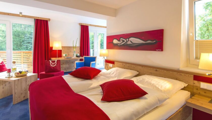 - Doppelzimmer „Impuls“ (DZX5), Doppelzimmer, ca. 30 m², 1 Zustellbett, Babybett: ohne Gebühr, Reservierung notwendig, Heizung: individuell regelbar, Fußboden: Teppichboden, Safe: ohne Gebühr, Telefon, Internet: WLAN/WiFi, Fernseher: deutsches Programm, Kabel-TV, Radio, Reinigungsservice: täglich, Badewanne oder Dusche, Dusche, WC, Föhn, Balkon: mit Sitzgelegenheit, Französischer Balkon
