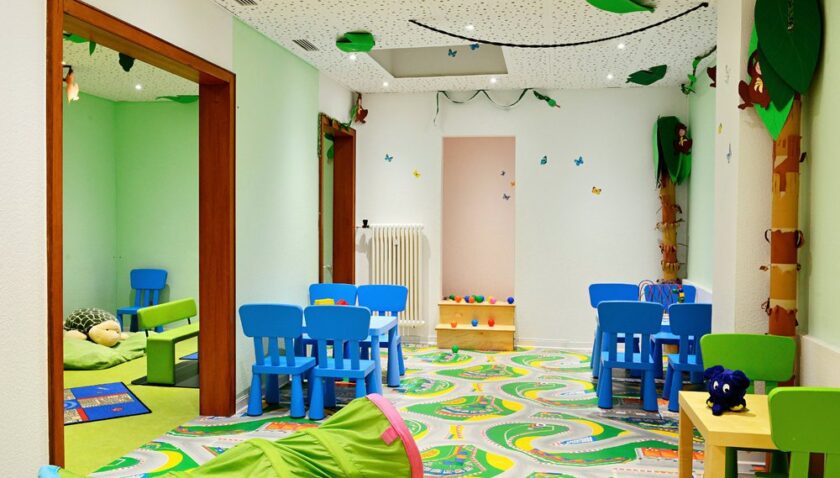 1200 qm Indoor-Spielplatz, Kinderbetreuung für Kinder 3-11 J. ca. 35 Std./Wo. (Di-Sa), Familienprogramm. Dauerspielraum für Kleinkinder, Chillraum für Teenager ab 12 J.. Babypaket (0-2 J.) inkl. Babybett, Windeleimer-/Auflage