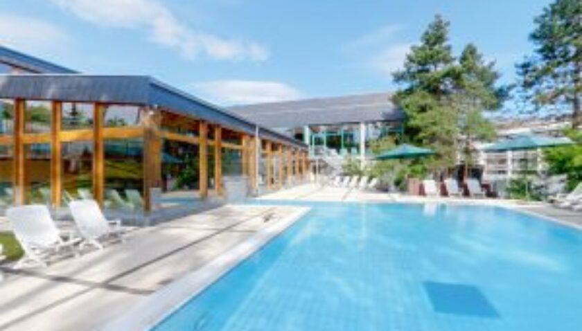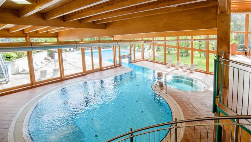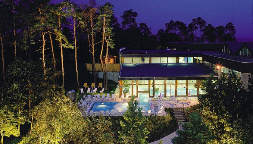 „Sonnenhügel-WasserWelt“: Außen- und Innenbecken, integr. Kinderbecken, LuftsprudelBad, Whirlpool, Saunagarten, DampfBad, Ruhezonen und Freigelände. Gegen Gebühr: Kosmetik- und Massageanwendungen