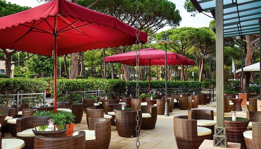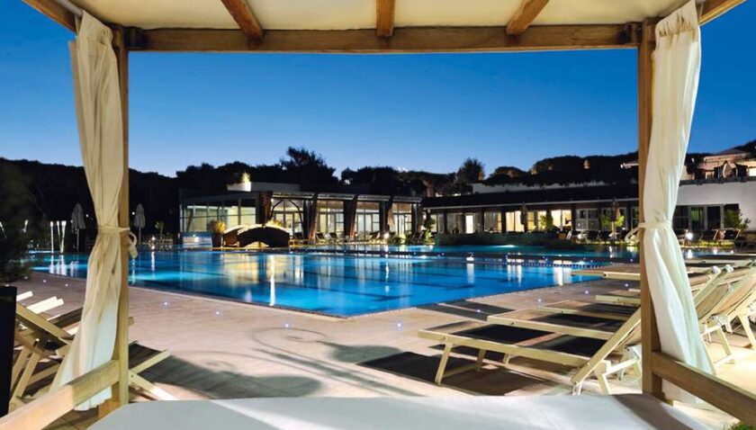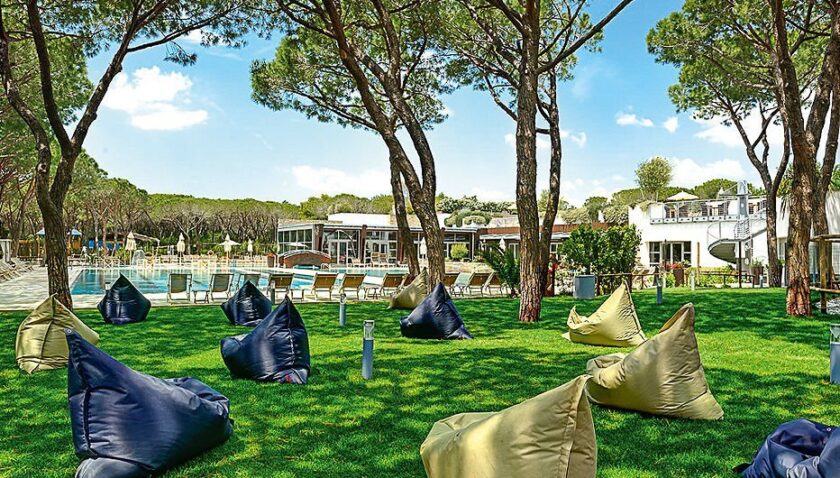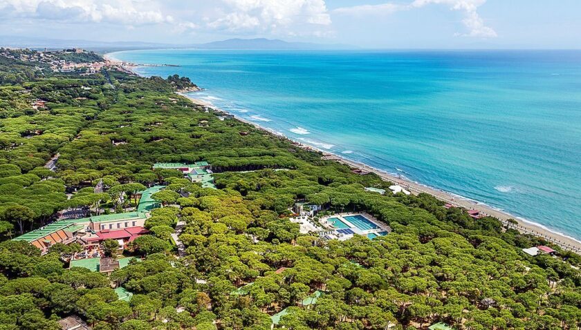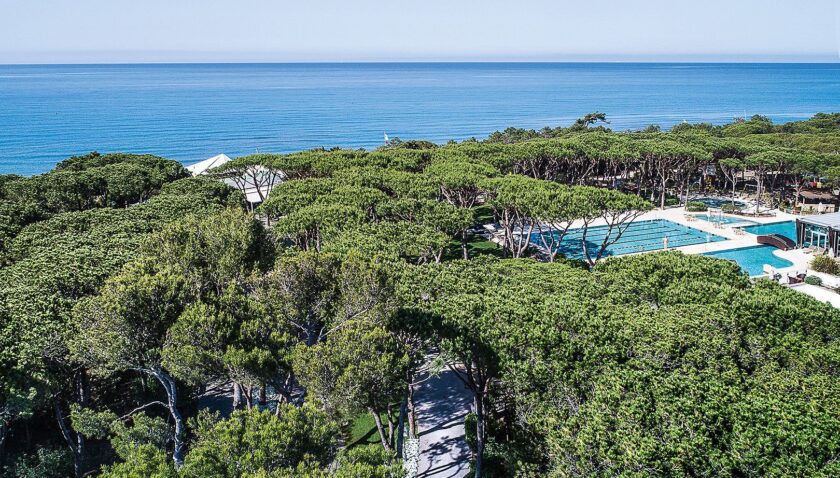 Dieses bei vielen Stammgästen beliebte Ferienresort empfängt Sie als weitläufige Oase in ruhiger Traumlage am Meer, direkt an seinem ausgedehnten Strandabschnitt und geborgen im schattigen Grün eines 27 ha umfassenden Pinienwaldes rund 2 km westlich des Ortszentrums.