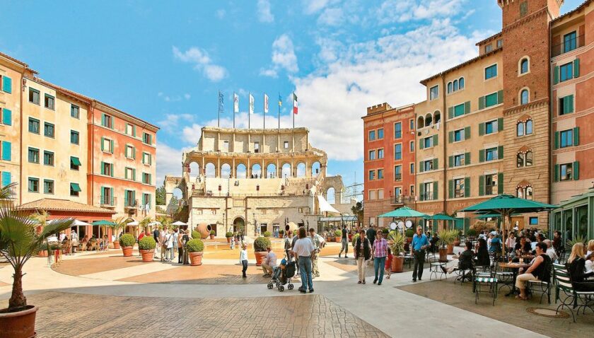Lassen Sie sich vom Temperament italienischer Lebenslust anstecken. Die rund 350 Zimmer, davon 22 exklusive Themensuiten, sind detailgetreu im römisch-italienischen Stil gestaltet. Rund um die Piazza mit dem imposanten Kolosseumbogen reihen sich wie in einem toskanischen Städtchen zwei Service- & ein Buffet-Restaurant, eine Pizzeria sowie ein Café. Zwei Bars – eine davon in der obersten Etage des Hotels – ergänzen das Angebot. Einkaufen wie in Italien ist im Souvenirshop und im Modeshop möglich. Und während die Großen bummeln, planschen die Jüngsten nach Herzenslust auf dem Wasserspielplatz. Das Hotel bietet zudem vier Lifte, einen Gepäckraum, eine Empfangshalle mit Sitzmöglichkeiten und ein Business-Center.