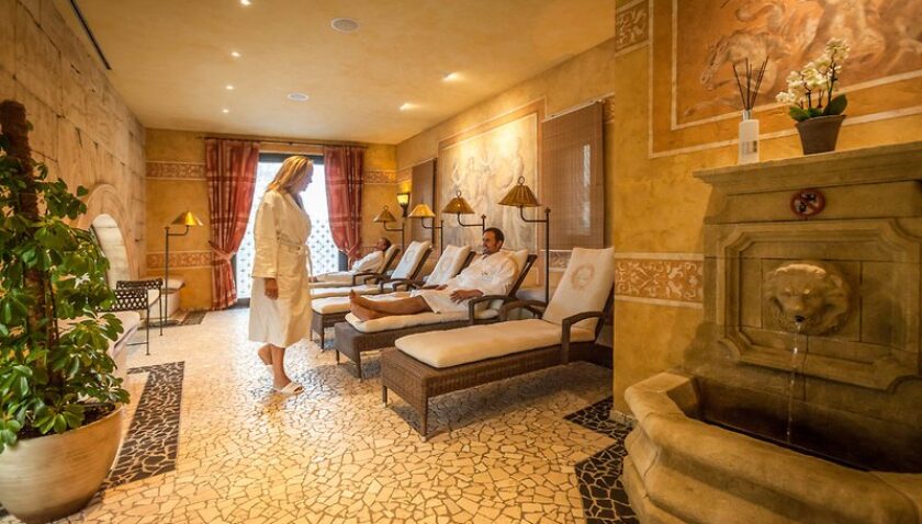 römisch thematisierte Poollandschaft im Innern des Kolosseumbogens mit beheiztem Outdoor-Pool samt Inneneinstieg. Saunabereich mit römischer Sauna, Dampfbad und Laconium (Nutzung ab 18 Jahre), zusätzlich stehen die vier Poolbereiche der anderen Europa-Park Hotels kostenfrei zur Verfügung. Gegen Gebühr: Wellness- & Spa-Bereich mit zahlreichen Massage- & Beautyanwendungen für die ganze Familie. Solarium (Nutzung ab 18 Jahre). Friseur.