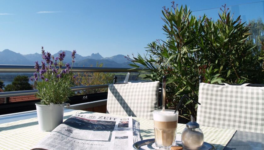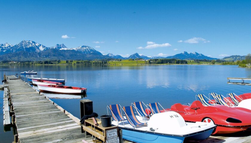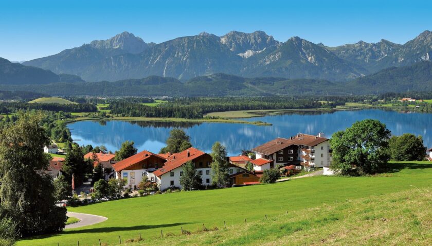 Eure Urlaubsort rund um das klimaneutrale Biohotel Eggensberger: Kneipp- und Luftkurort am Hopfensee, der „Riviera des Allgäus“, mit Blick auf die gesamte Bergwelt. Nahe der Stadt Füssen und den weltbekannten Königsschlössern Hohenschwangau und Neuschwanstein. Wander- und Radwege direkt ab dem Haus, Skigebiete und -kurse (ca. 8 km), Schneeschuhwanderungen, Kristalltherme. Bahnstation: Füssen (ca. 6 km).