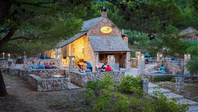 - Spezialitätenrestaurant „Konoba / Komin“: Küche: mediterran, regional, Menüwahl, Reservierung notwendig, saisonabhängig; wetterabhängig, So. – Fr., zwei Essenszeiten am Abend, Kinderhochstuhl