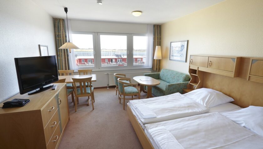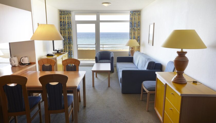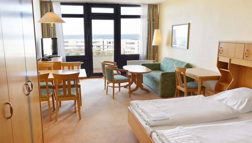 - Vitamar Typ VA2 (APX8), Ferienwohnung, Seeseite, Südseite, ca. 54 m², kombiniertes Wohn-/Schlafzimmer, 2 Einzelbetten, 1 Doppelbett, 1 Schlafsofa, Babybett: ohne Gebühr, Sitzecke, Kochnische, Kaffeemaschine, Wasserkocher, Toaster, Telefon, Fernseher: Sat-TV, WC, Föhn, Balkon: mit Sitzgelegenheit, Nebenkosten: Endreinigung: ohne Gebühr