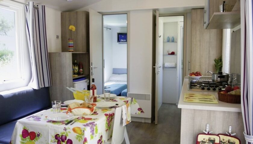 Mobilhome-Happy-Premium (CM1): 26-30 qm, Wohnmobil, Standard, Nichtraucher, kombinierter Wohn-/Schlafraum, 2 separate Schlafzimmer, Sitzecke, Einzelbett, Doppelbett, Sofabett, 1 Bad, Dusche, 1 WC, Klimaanlage (kostenpflichtig, individuell regulierbar), Kochnische, Essecke, Gas-/E-Herd (4 Kochplatten), Kühlschrank, Terrasse (möbliert), Kopfkissen und Decken vorhanden, Bettwäsche/Handtücher/Küchenwäsche kann vor Ort gemietet werden (ca. 20 EUR/Doppelbett, ca. 15 EUR/Einzelbett), Strandtuch kann vor Ort gekauft werden (ca. 8 EUR/Person), Energiekosten (kostenfrei), Endreinigung selbst oder zahlbar vor Ort (ca. 50 EUR/Aufenthalt), Kaution (bar, ca. 100 EUR/Aufenthalt)