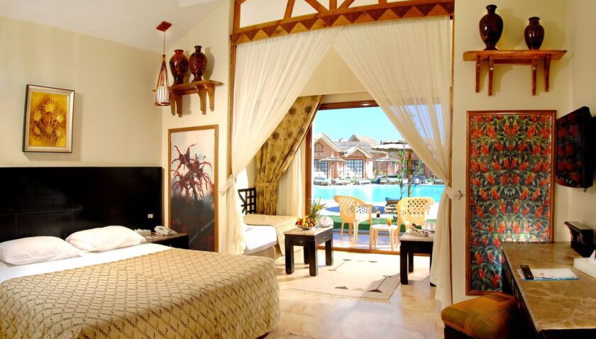 - Familienzimmer Single mit Kind Typ1 (FSX1), Bungalow, Nichtraucherzimmer, Poolseite, Gartenseite, Poolblick, Gartenblick, ca. 26 – 46 m², letzte Komplettrenovierung 2017, letzte Teilrenovierung 2017, Gesamtanzahl der Räume in diesem Zimmertyp: 1, Aufteilung wie folgt: 1 Schlafzimmer, 2 Einzelbetten (110x200cm), 1 Doppelbett (180x200cm), Babybett: ohne Gebühr, Klimaanlage: ohne Gebühr, individuell regelbar, kalt, warm, Fußboden: Fliesenboden, Safe: ohne Gebühr, Kaffee-/Teezubereiter, Wasserkocher, Minibar: gegen Gebühr, Softdrinks: gegen Gebühr, Wasser: ohne Gebühr, Minibarauffüllung, Telefon, Internet: WLAN/WiFi: ohne Gebühr, Fernseher: Flatscreen, im Schlafzimmer, deutsches Programm, Sat-TV, Roomservice: gegen Gebühr, Reinigungsservice: ohne Gebühr, Dusche, WC, Föhn, Balkon oder Terrasse: mit Sitzgelegenheit