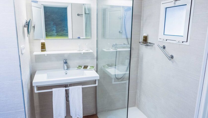 Doppelzimmer (im Hotel): Die Zimmer sind ca. 26 m² groß und verfügen über Dusche oder Badewanne, WC, Klimaanlage/Heizung, Föhn, Balkon, Telefon, Flatscreen TV, Minikühlschrank, Safe. Ohne Meerblick. Als Single mit Kind buchbar. Die Zimmer wurden alle im Jahre 2017/2018 renoviert und neu eingerichtet.