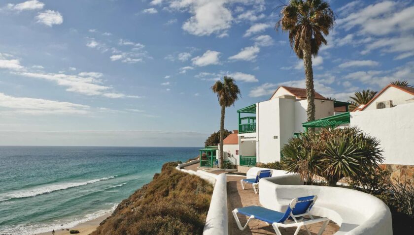 Auf einem Felsplateau über dem schönen, langgezogenen Sandstrand von Jandia gelegen. Sie genießen von der Anlage aus einen herrlichen Panoramablick auf den Ozean.