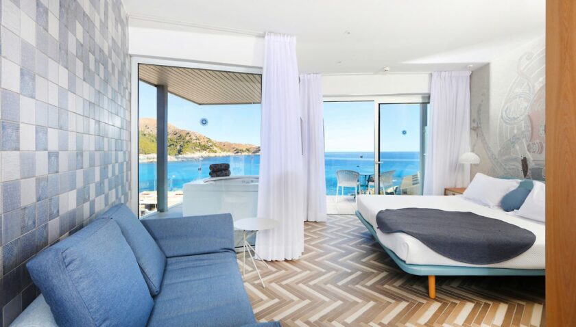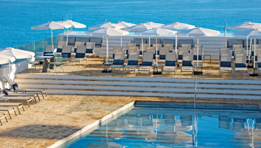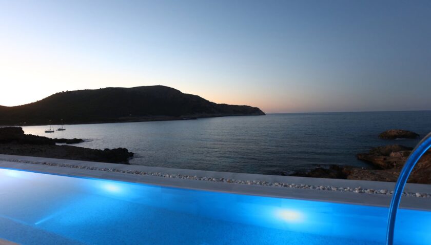 Das stylische Adults only-Hotel liegt an der malerischen Promenade mit einem herrlichen Panoramablick über die Bucht Cala Guya. Durch seine ruhige Lage fühlen sich hier besonders Paare wohl und genießen gerne den Blick vom Infinity-Pool auf das weite Meer.