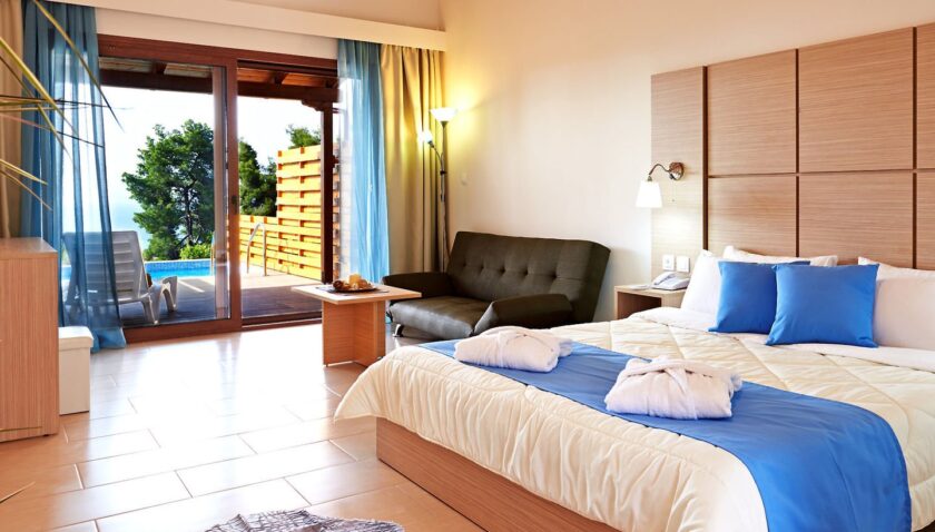Wer traumhafte Ausblicke auf Meer sucht, ist hier genau Richtig. Das Hotel Alia Palace befindet sich in Pefkochori in Hanglage und bietet wunderschöne Ausblicke auf das Meer – besondersvom Infinity Pool, wo Ihr relaxen könnt. Schöner kann man Urlaub nicht verbringen. Wie schön die Ecke ist, zeigen unten die Videos.