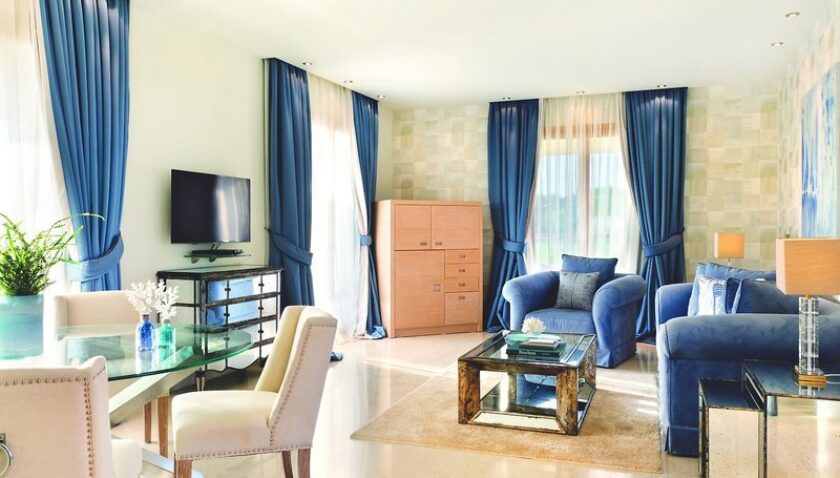 • Suite – limited (SUY1), Suite, Nichtraucherzimmer, im Nebengebäude, ca. 55 m², Gesamtanzahl der Räume in diesem Zimmertyp: 2, Aufteilung wie folgt: kombiniertes Wohn-/Schlafzimmer, 1 Schlafzimmer, 1 Queen Size Bett, 1 Schlafsofa, 1 Zustellbett, Babybett: ohne Gebühr, Anfrage notwendig, Reservierung nicht notwendig, Klimaanlage: ohne Gebühr, zentral gesteuert, kalt, warm, Fußboden: Fliesenboden, Safe: ohne Gebühr, Nespressomaschine, Kaffee-/Teezubereiter, Wasserkocher, Minibar: gegen Gebühr, Softdrinks: gegen Gebühr, Wasser, alkoholische Getränke: gegen Gebühr, Snacks: gegen Gebühr, Minibarauffüllung: täglich, Telefon, Internet: WLAN/WiFi: ohne Gebühr, Fernseher: Flatscreen, im Wohnbereich, im Schlafzimmer, deutsches Programm, Sat-TV, DVD-Player, CD-Player, iPod-Docking Station, Roomservice: täglich, gegen Gebühr, Reinigungsservice: täglich, ohne Gebühr, separate Dusche, Badewanne, Whirlpool, WC, Bademantel: ohne Gebühr, Slipper: ohne Gebühr, Föhn, Balkon oder Terrasse: mit Liegen, mit Sitzgelegenheit