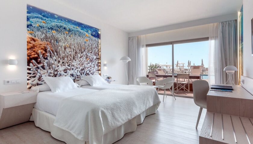 Das Deluxe Doppelzimmer mit seitlichem Meerblick entspricht dem Zimmertyp „Double Sharing Pool“ des Hotels. Von der möblierten Terrasse aus können Sie direkt in den Pool eintauchen.