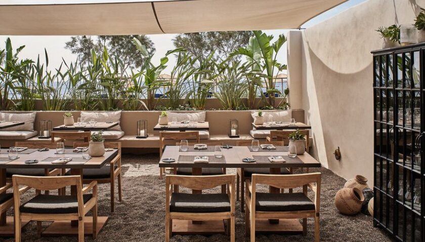 Diese 12-Zimmer-Anlage mit der markanten Architektur der Kykladen bietet eine spektakuläre Kombination aus traditionellen und modernen Elementen. Ausgewählte Holzmöbel und handgefertigte Textilien, wie zum Beispiel traditionelle gewebte Wolle, geben dem Hotel eine ganz besondere Note. Im Hotelrestaurant bietet Chefkoch Alexandros Tsiotinis, der sich in den mit Michelin-Sternen ausgezeichneten Küchen von Noma in Kopenhagen und Le Bristol in Paris einen Namen gemacht hat, eine einzigartige kulinarische Reise, die von den kulinarischen Traditionen Santorins und der Fülle an frischen Meeresfrüchten geprägt ist.