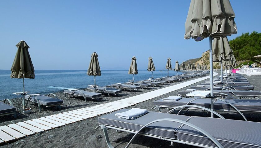 - Strand „Agios Fokas“: Kies, steil abfallend, Treppen zum Strand, Badeschuhe empfehlenswert, privat, Liegen: ohne Gebühr, Sonnenschirme: ohne Gebühr