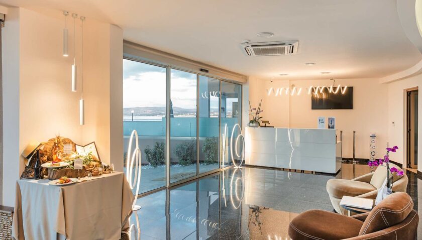 Mit einem kühlen Getränk werden Sie im großzügigen Rezeptionsbereich des Epos Luxury Beach Hotel empfangen. Elegantes Design und viel Sinn für Luxus eröffnen eine Urlaubswelt voll Entspannung, Sorglosigkeit und unvergesslicher Momente.