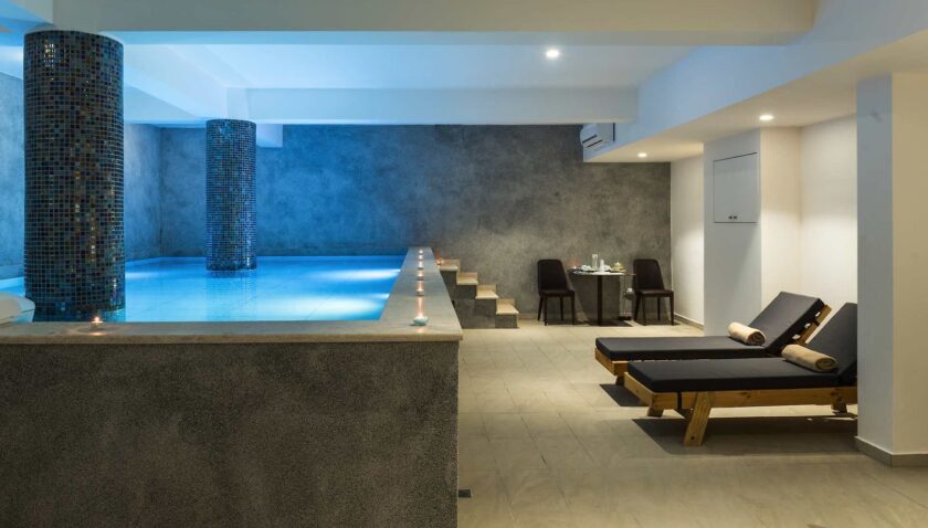 Wellness im Epos Luxury Beach Hotel : Spa Bereich mit Sauna und Dampfbad (inklusive). Diverse Anwendungen wie Massagen, Maniküre/Pediküre und Frisör jeweils gegen Gebühr.