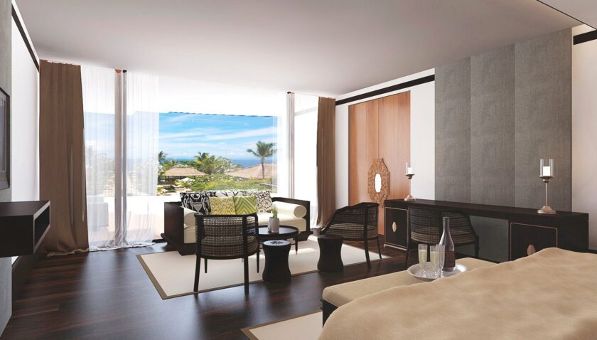 - Grand Deluxe Ocean Court Room (DZX2), Doppelzimmer, zum Innenhof gelegen, Meerseite, seitlicher Meerblick, Poolblick, ca. 65 m², Gesamtanzahl der Räume in diesem Zimmertyp: 1, Aufteilung wie folgt: kombiniertes Wohn-/Schlafzimmer, 1 King Size Bett (210x240cm), 1 Zustellbett (100x120cm), Babybett: ohne Gebühr, Anfrage & Reservierung notwendig, Klimaanlage: ohne Gebühr, Januar – Dezember, individuell regelbar, Fußboden: Fliesenboden, Parkett, Safe: ohne Gebühr, Sofa, Schreibtisch, Bügeleisen, Bügelbrett, Minibar: gegen Gebühr, Softdrinks: gegen Gebühr, Wasser: ohne Gebühr, alkoholische Getränke: gegen Gebühr, Snacks: gegen Gebühr, Minibarauffüllung: täglich, Telefon, Internet: WLAN/WiFi: ohne Gebühr, Fernseher: Flatscreen, im Schlafzimmer, deutsches Programm, Sat-TV, iPod-Docking Station, Roomservice: täglich 24 Stunden, gegen Gebühr, Reinigungsservice: täglich, ohne Gebühr, separate Dusche, Regendusche, Badewanne, separates WC, Bademantel: ohne Gebühr, Slipper: ohne Gebühr, Bad durch Glaswand getrennt, Föhn, Kosmetikspiegel, Balkon: mit Sitzgelegenheit