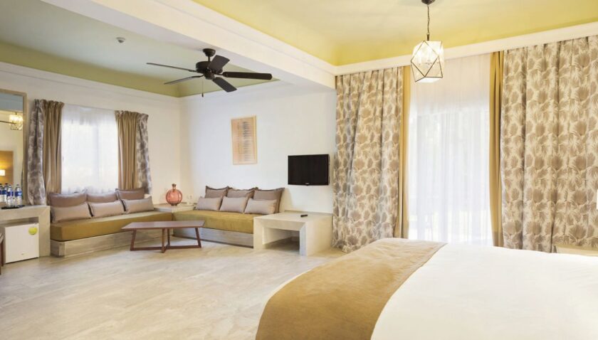- Juniorsuite Standard (JSX1), Juniorsuite, ca. 48 m², letzte Komplettrenovierung 2019, Gesamtanzahl der Räume in diesem Zimmertyp: 1, Aufteilung wie folgt: kombiniertes Wohn-/Schlafzimmer, Babybett: ohne Gebühr, Anfrage notwendig, Klimaanlage: saisonabhängig, zentral gesteuert, Heizung: saisonabhängig, zentral gesteuert, Safe: ohne Gebühr, Deckenventilator, Sofa, Kühlschrank, Telefon, Internet: WLAN/WiFi: ohne Gebühr, Fernseher: Sat-TV, Dusche, separate Dusche, separates WC, Föhn, Balkon oder Terrasse: mit Sitzgelegenheit