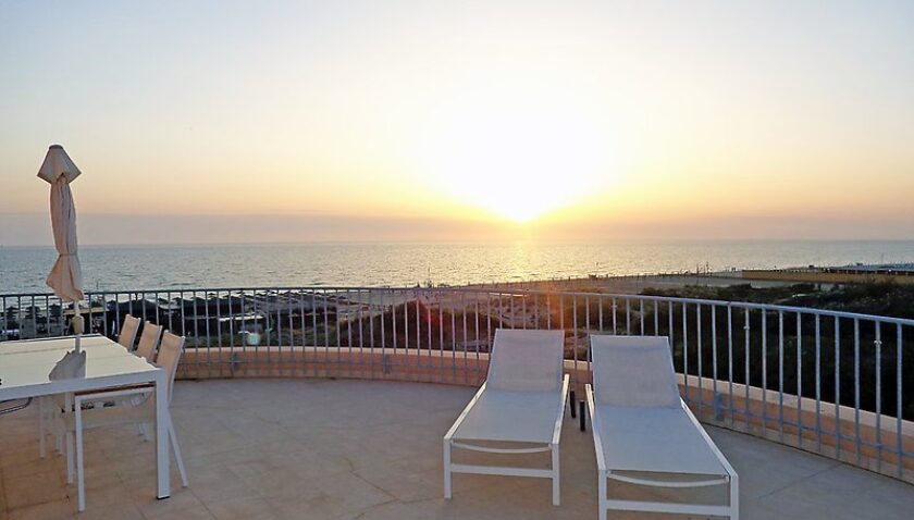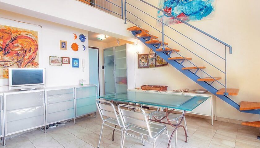 Unterkunft: „Suite 48“, 2-Zimmer-Maisonette-Wohnung 50 m2 im 2. Stock. Komfortabel und schön eingerichtet: Wohn-/Esszimmer mit 1 Doppeldiwanbett, TV und Klimaanlage. Ausgang zur Terrasse. Offene Küche (Backofen, Geschirrspüler, 4 Induktionskochplatten). Dusche/Bidet/WC. Klimaanlage. Obergeschoss: 1 offenes Doppelzimmer mit 1 Bett, 1 franz. Bett, Dusche/Bidet/WC und TV (Flachbildschirm). Grosse Terrasse. Terrassenmöbel, Liegestühle. Sicht auf das Meer. Zur Verfügung: Waschmaschine. Parkplatz Nr. 21 (eingezäunt). Geeignet für Familien.