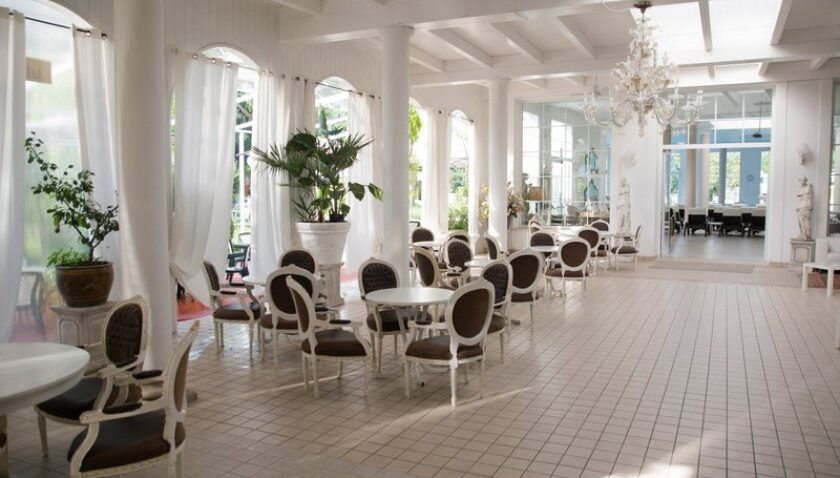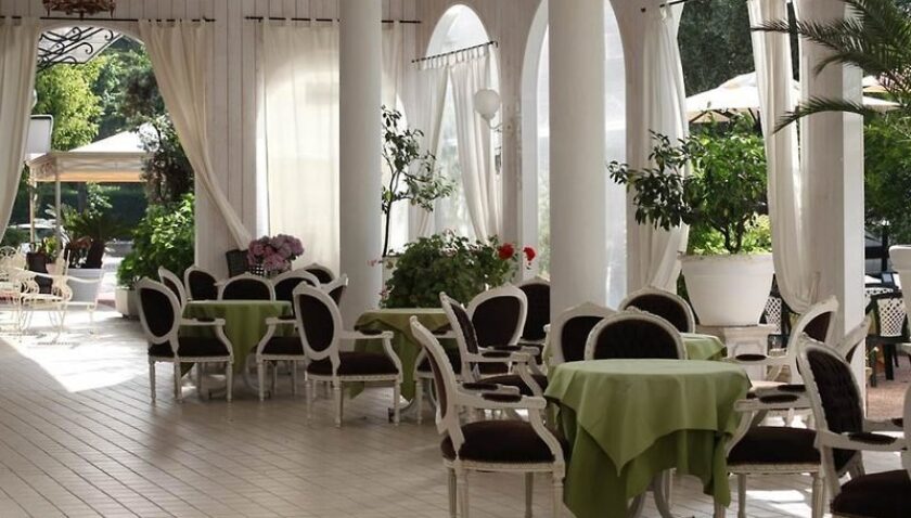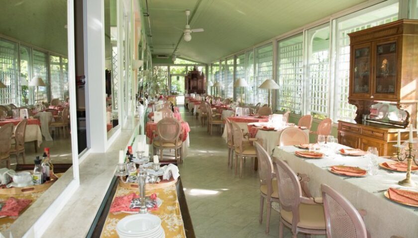 Romantisches Restaurant „Bellevue“, elegante Gartenveranda. Reichhaltiges Frühstücksbuffet, Spezialitäten der italienischen und venezianischen Küche. Vegetarische und Diät-Gerichte auf Anfrage.